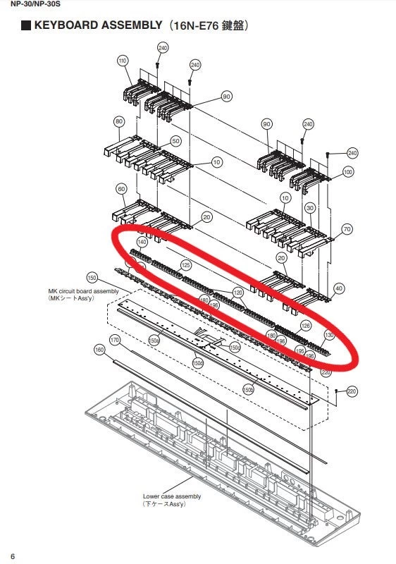Complete Set Of Contact Rubbers For Yamaha NP30, NP31, NP32