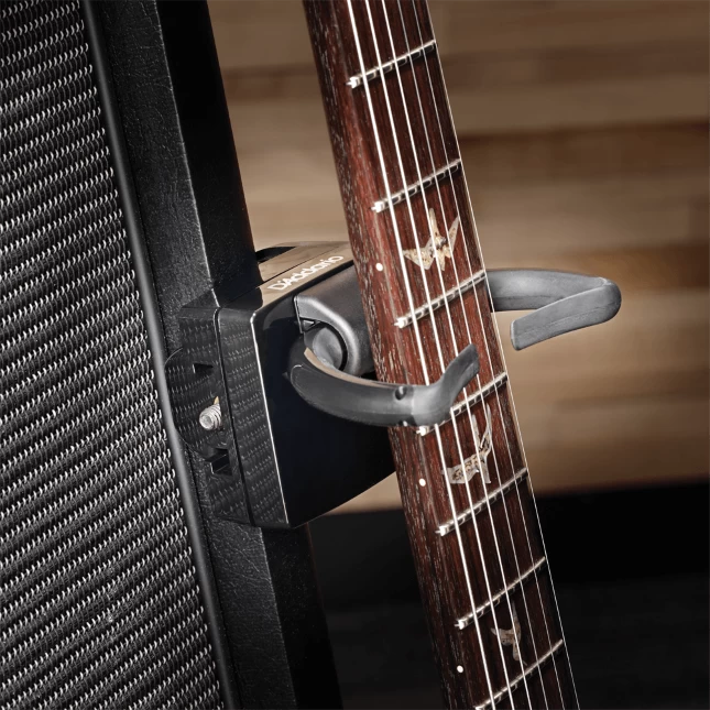 The Guitar Dock by D’Addario allows you to turn any surface with a flat edge into a secure instrument stand.Â