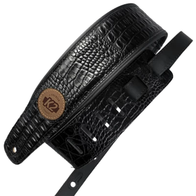 K2 Black Garment Leather 3″ Guitar Strap – Croc Design
