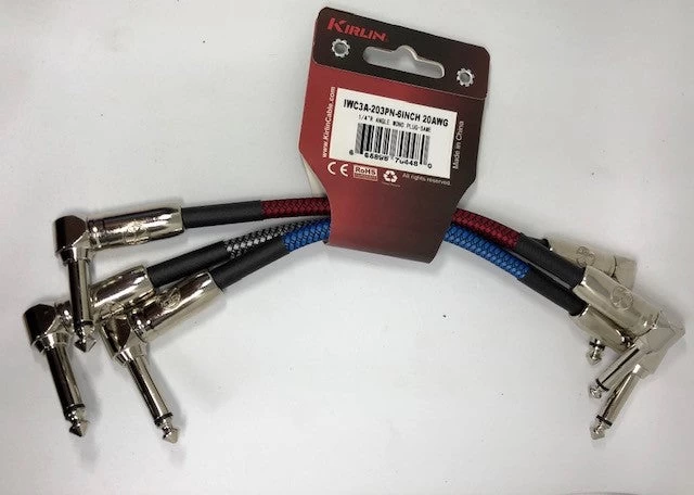 Kirlin 6″ / 15cm Coloured woven fabric coated 1/4″ right angle jack – 1/4″ right angle jack instrument patch cable