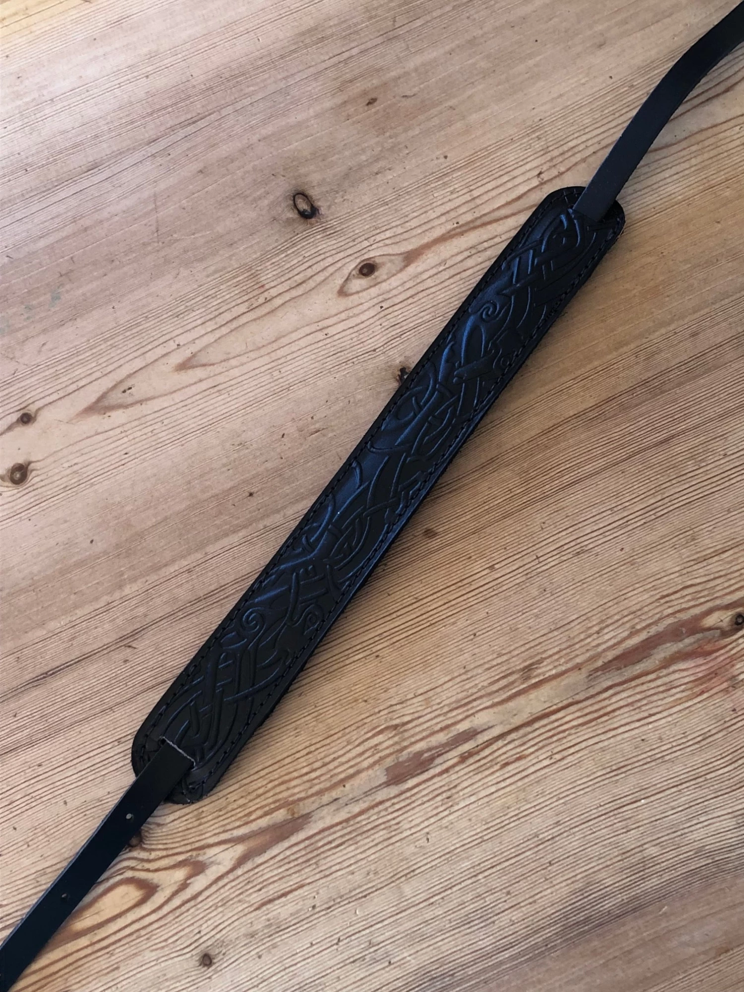 LG Black Embossed Leather Mandolin / Ukulele Strap – Padded Shoulder Pad
