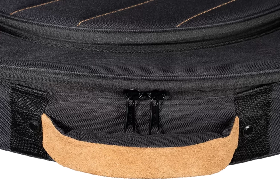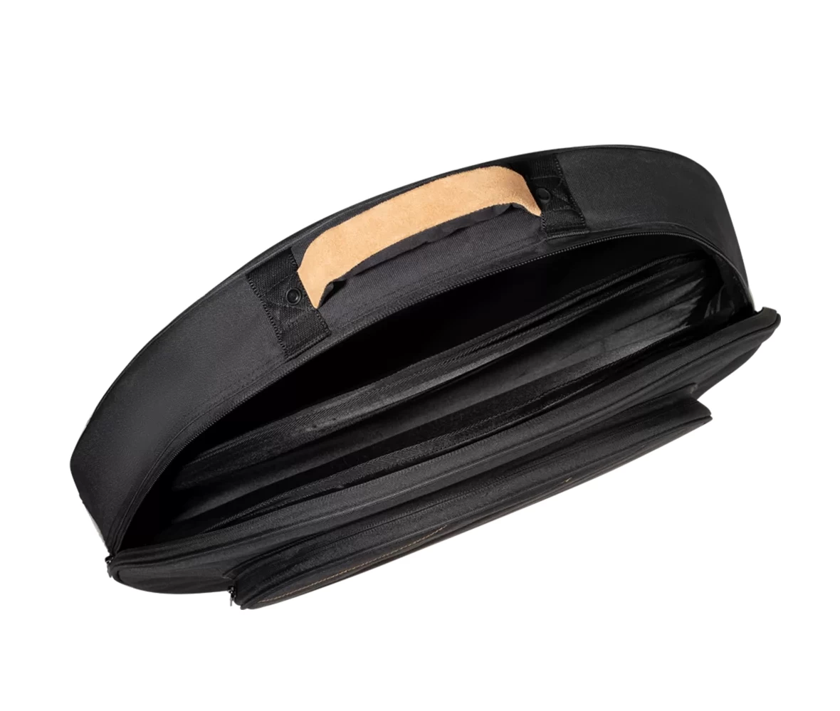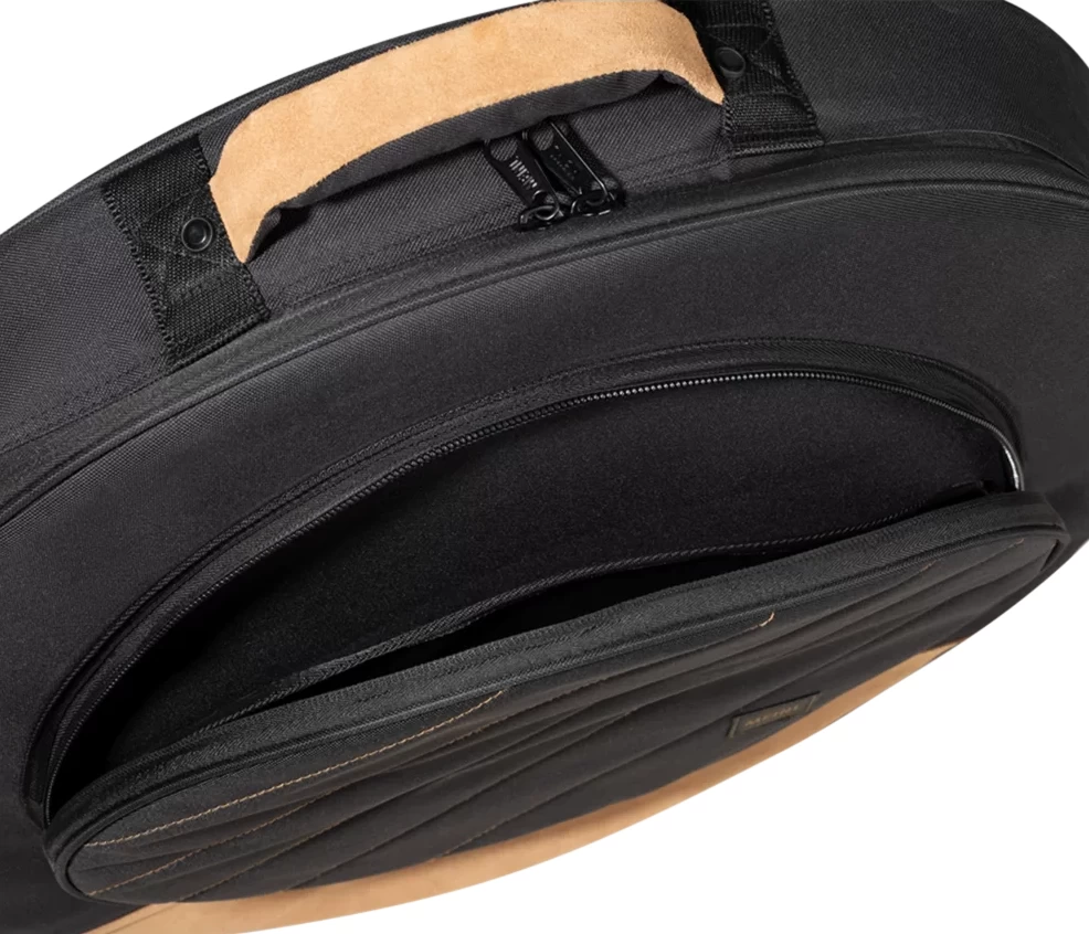 It features suede leather accents on the bottom and handle. Inside the main compartment is plenty of room to fit 22” cymbals, and it comes with three cymbal dividers to avoid metal-on-metal contact.