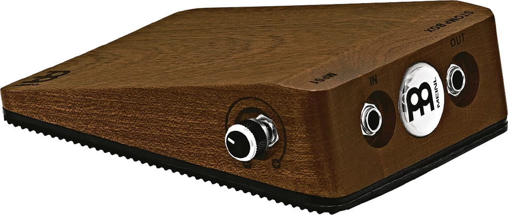 The MEINL Percussion Analog Stomp Box is an easy solution for incorporating a pulse into your music. An analog signal gives the pedal a naturally deep stomping sound, along with its solid mahogany body – perfect for percussionists, singer/songwriters, and multi-instrumentalists. Simply plug into any amp or PA with the ¼” input and output jacks, then adjust the volume on the pedal as needed. The built-in Piezo pickups are velocity sensitive, giving you a seamless dynamic response as you tap your foot at different volumes. A non-slip bottom keeps the pedal in place and prevents vibration.