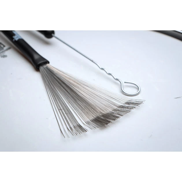Years ago, Steve and Vic solved the age-old problem of wire brushes snagging on new coated heads by slightly angling the wires in the playing end.